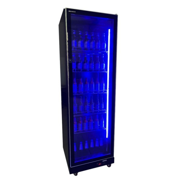OptionCompresseur de marque, armoire intérieure et extérieure revêtue de couleur, étagère mobile chromée à cinq couches et étagère de séparation, thermostat électronique, roulettes universelles, avec lumières LED réglables tricolores, retour automatique à la porte en verre trempé plein écran (poignée encastrée ), évaporateur à tube de cuivre, avec fonction d'évaporation et de dégivrage automatique.